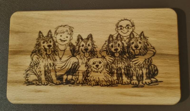 Juli 2023 gestart met het graveren van bordjes/onderzetters/planken.